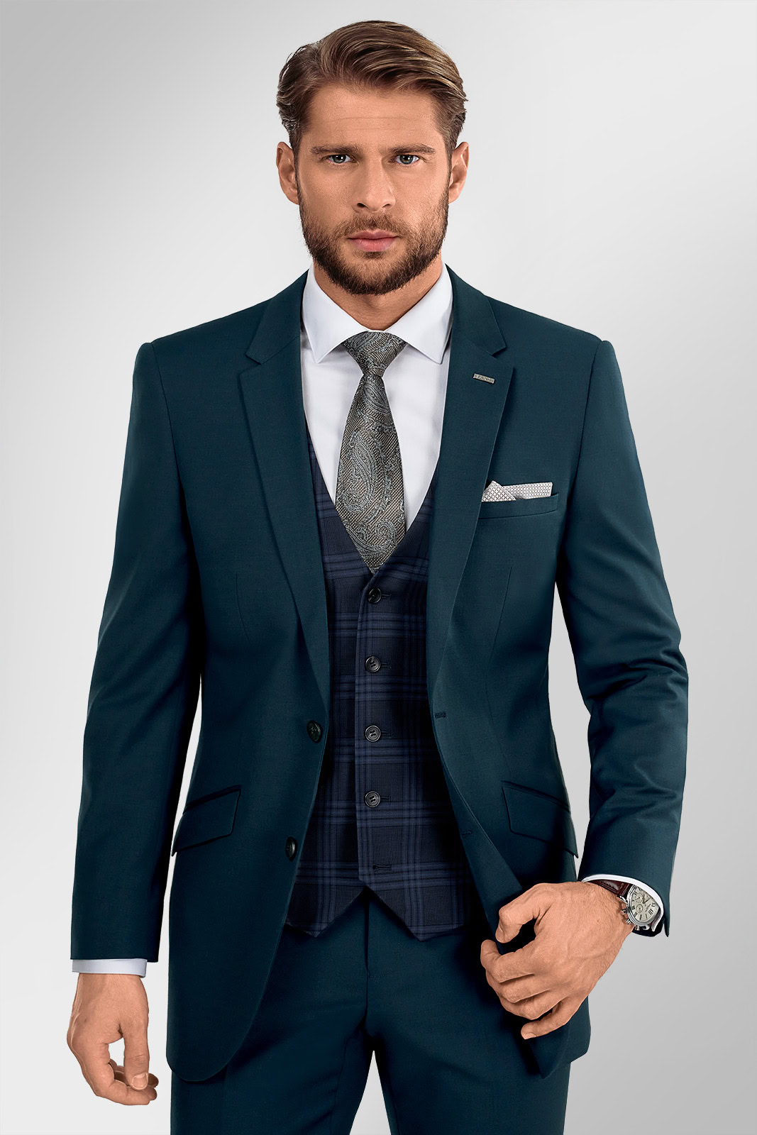 Navštivte svou nejbližší značkovou prodejnu BANDI a vyzkoušejte si oblek Bergamo Emerald při šálku lahodné kávy BANDI nebo jiného osvěžujícího nápoje. Odborní poradci vám pomohou s výběrem košil, vest, obuvi a doplňků a ukáží vám, jak vše perfektně zkombinovat do dokonalých outfitů.