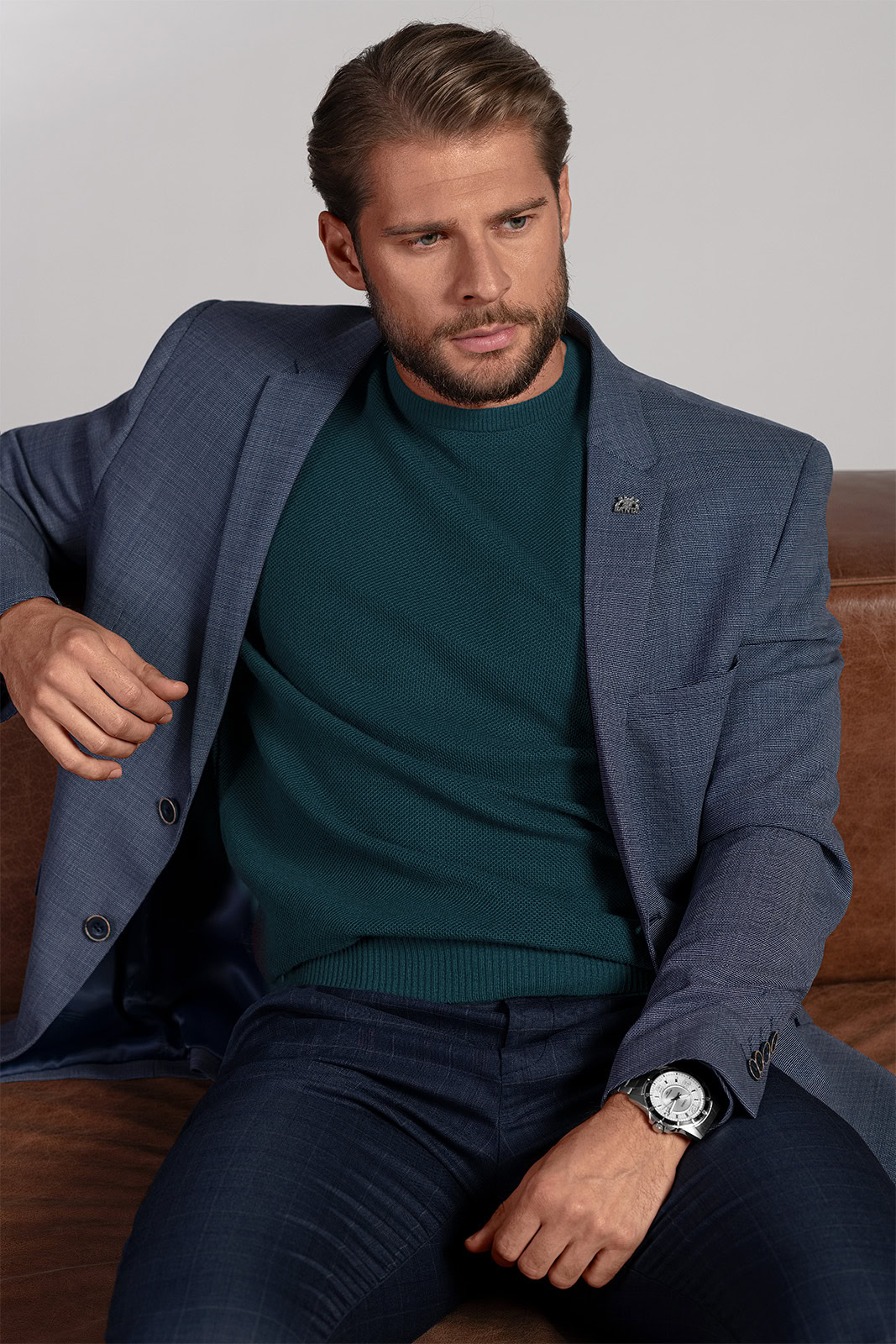 Pracujeme z kanceláře, letiště i z vlaku. Cestování za prací je dnes běžnou součástí moderního života. V takových chvílích oceníte lehký a stylový Business Casual outfit: bílé polotriko, modré kalhoty a kostkované sako. Perfektní na cestu, pracovní schůzku i neformální setkání.