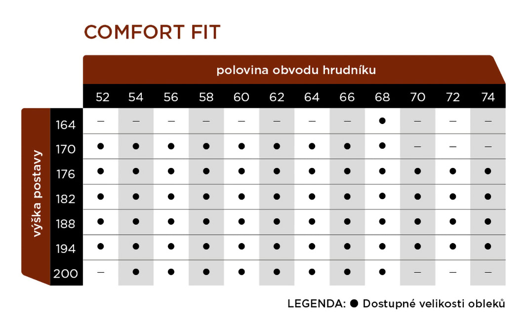 - je určený vysokým a statným mužům. Pokud máte bezmála dva metry, široký hrudník a větší obvod v pase, pak je pro vás střih Comfort Fit určitě správnou volbou.