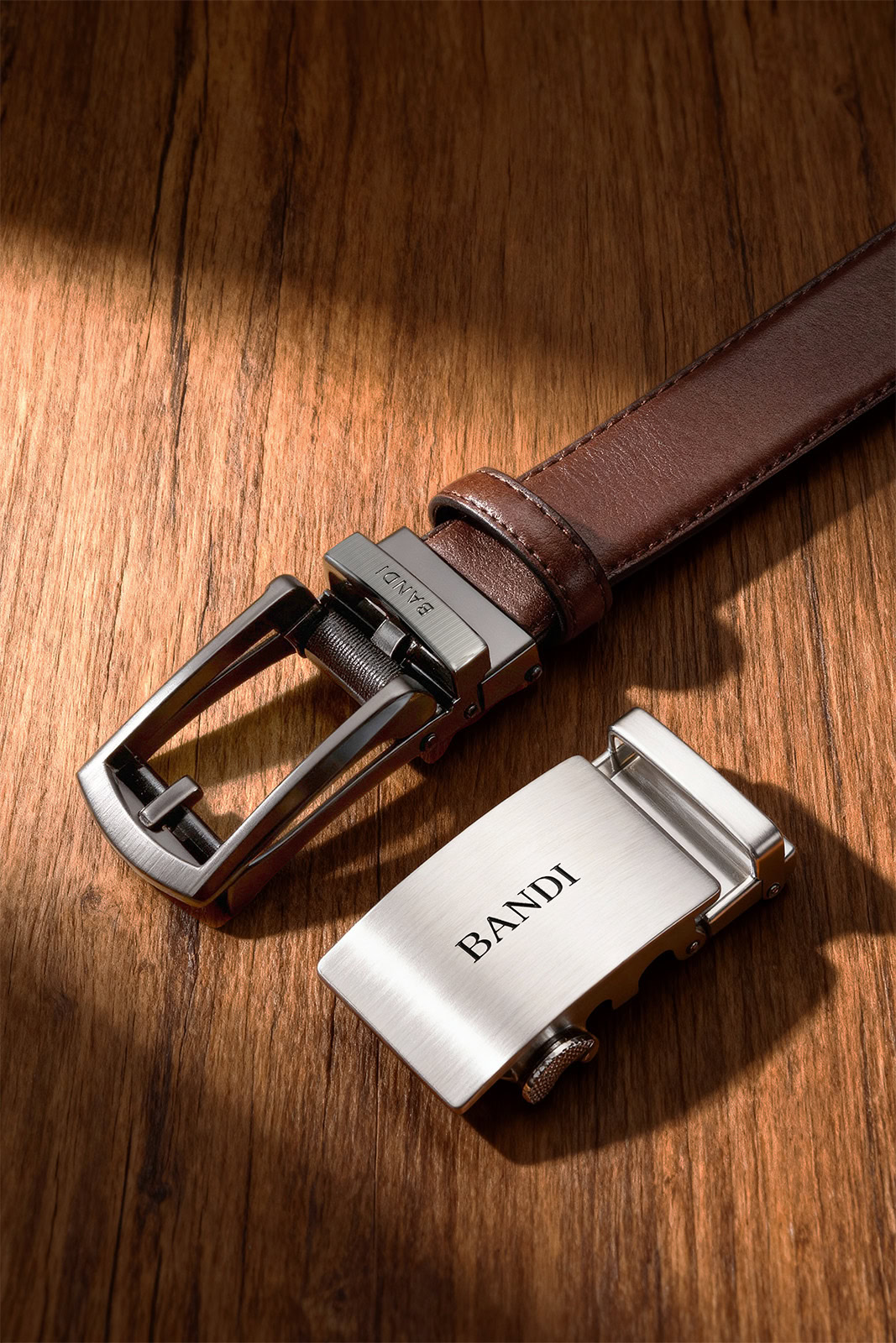 Set koženého opasku BANDI se dvěma sponami potěší každého gentlemana, který dbá na všestrannost svého šatníku. Pro své outfity využije hned dvě originální spony s automatickým zapínáním – jednu v klasickém provedení a druhou v moderním minimalistickém designu.