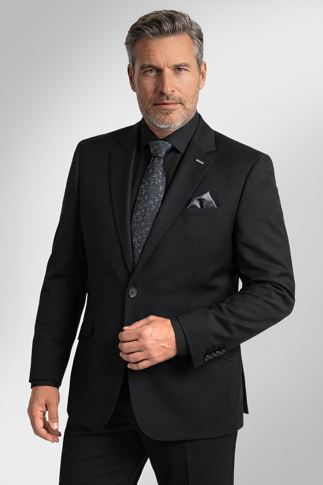 Noblesní černý oblek BANDI Corneli Nero nechá vyniknout vaši osobnost a dodá vašemu vystupování potřebnou sebejistotu. V zaměstnání si tak snadněji získáte respekt svých kolegů, obchodních partnerů i klientů. Svým vytříbeným stylem zapůsobíte také na svatbách, oslavách a plesech.
