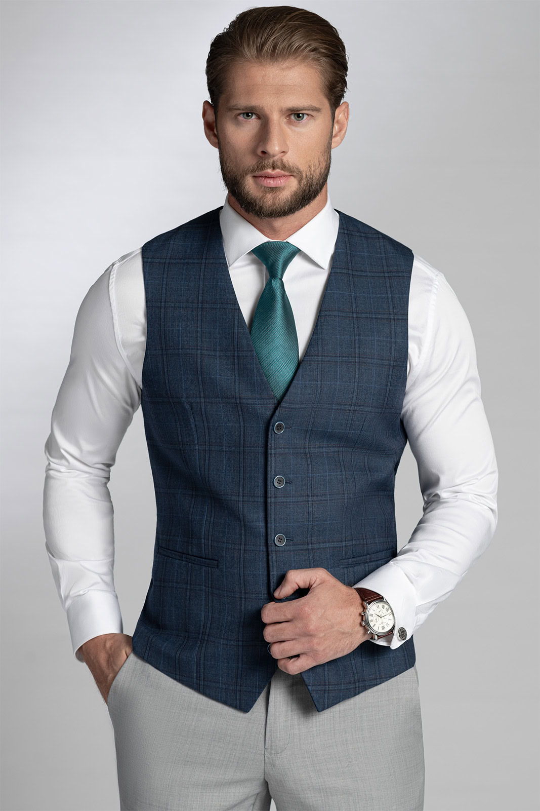 Objevte půvab a kouzlo kostkované klasiky, která nikdy nevyjde z módy! Pro milovníky tradiční elegance je tou pravou volbou modrá vesta BANDI Corsini Blu s ikonickým vzorem. Nechá vyniknout váš vybraný vkus, ať se vydáte do společnosti, na svatbu nebo na pracovní schůzku s obchodním klientem.
