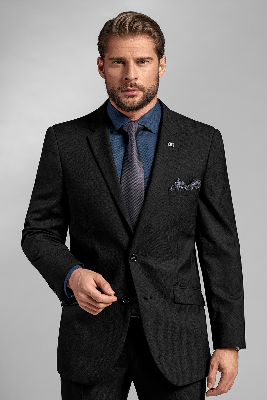 Myslíte, že k obleku na večer patří vždy bílá košile? Pokud vyznáváte klasický styl, pak je to dokonalá volba. Ale můžete vyzkoušet moderní kombinaci a k černému modelu Cortone si oblékněte výraznou tmavou košili a honosné doplňky – dodají vašemu slavnostnímu outfitu originalitu a hravost.