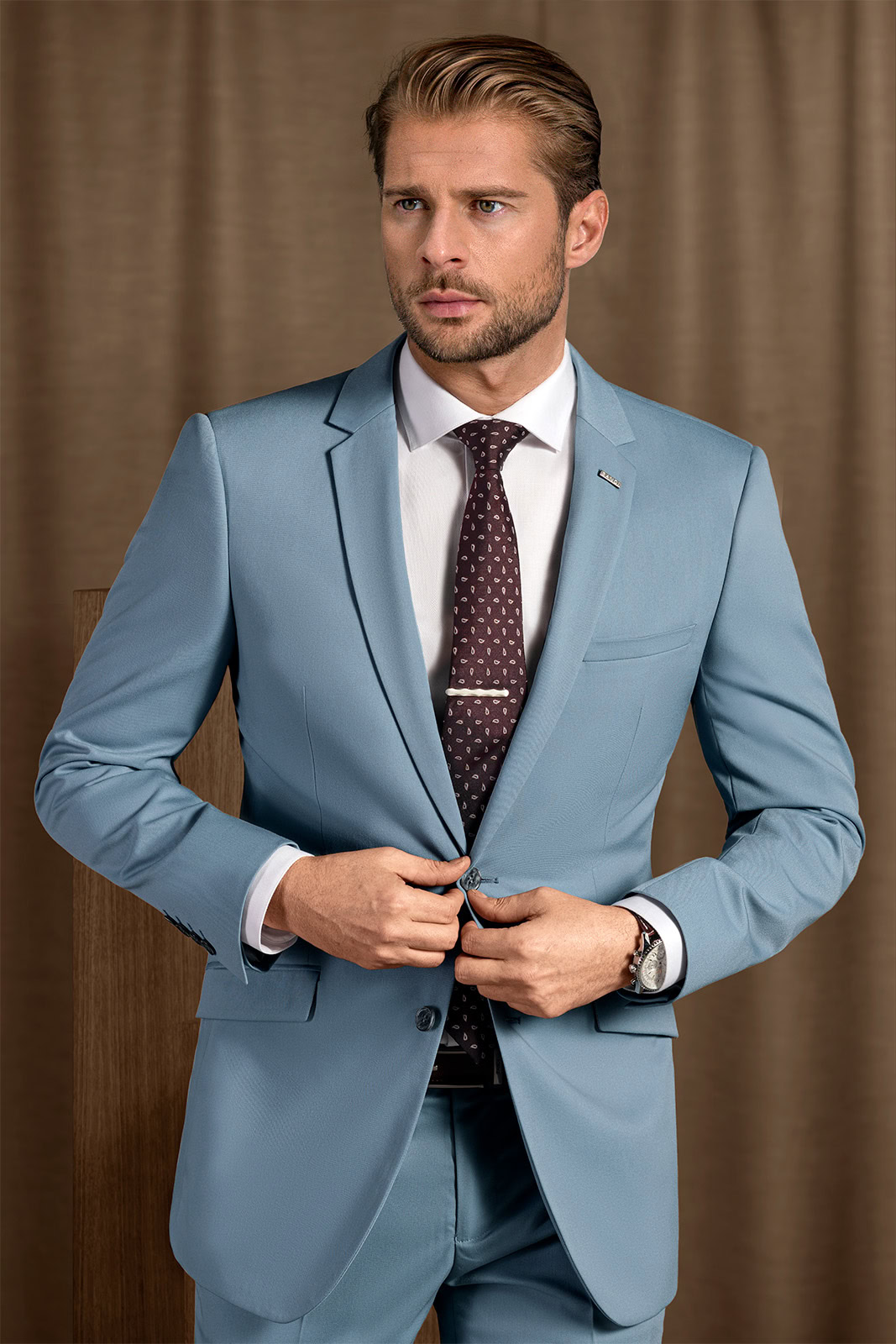 Proměňte každou letní událost v oslavu noblesy a pohodlí. Originální oblek BANDI Estatio ve svěžím, světle modrém odstínu nechá vyniknout váš jedinečný styl a eleganci na každé společenské i kulturní slavnosti. Doporučujeme do práce i na letní svatby pod širým nebem.