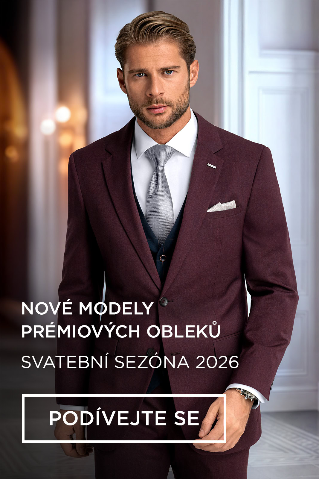 Nenašli jste mezi prezentovanými obleky ten pravý? Nevadí. Prohlédněte si také nové modely pánských obleků BANDI pro svatební sezónu 2026. Vyberte si provedení, střih a barvu, které nejlépe odpovídají vašemu gustu i charakteru svatby.