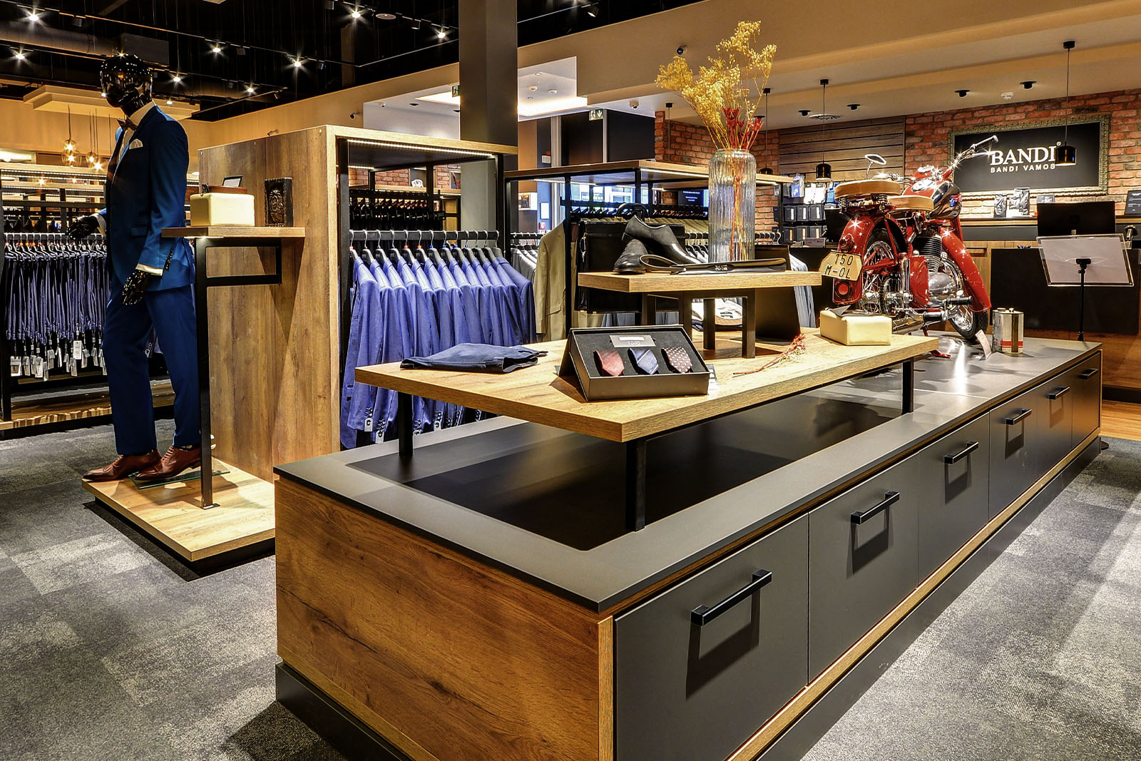Přijďte si užít příjemné prostředí u šálku lahodné kávy BANDI a vybrat si ten správný oblek pro vás. Pánské obleky zde pořídíte již od 5.470 Kč.
