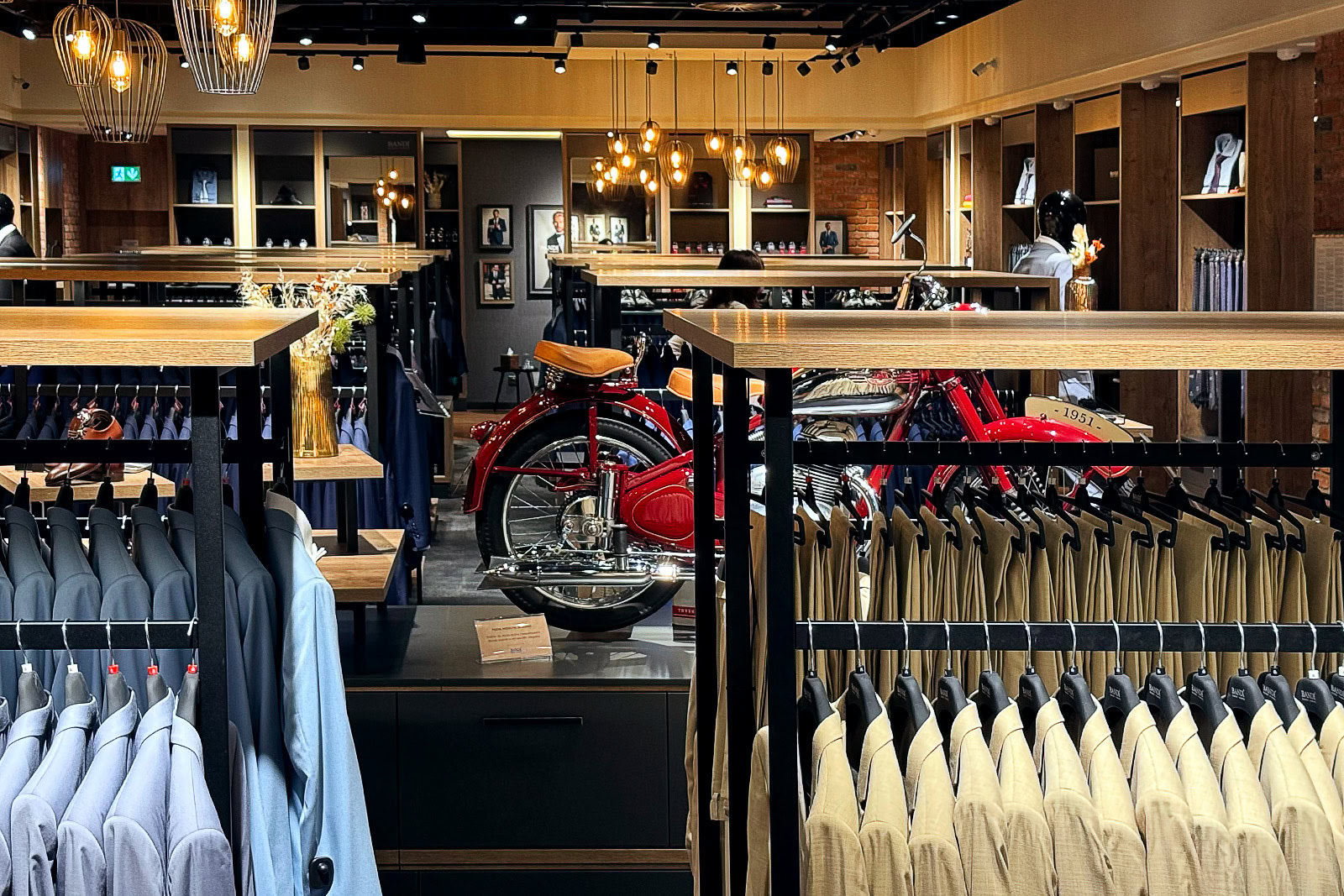 Rádi byste se podívali, jak vypadají moderní prostory nové pražské prodejny Pánské obleky BANDI? Zajímá vás, na co se můžete těšit při její návštěvě? Prohlédněte si fotografie zachycující interiér značkové prodejny Pánské obleky BANDI Praha 6-Ruzyně.