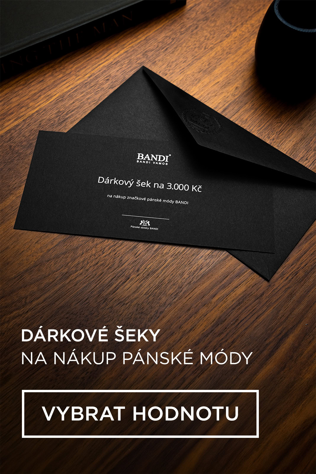 Máte obavy, že se netrefíte do vkusu obdarovaného? Věnujte mu dárkový šek BANDI a dejte mu možnost, aby si vybral přesně to, co si sám přeje z celého sortimentu pánských obleků, oblečení, obuvi a módních doplňků. Navíc si v klidu vychutná jedinečný zážitek z nákupu ve značkové prodejně BANDI.
